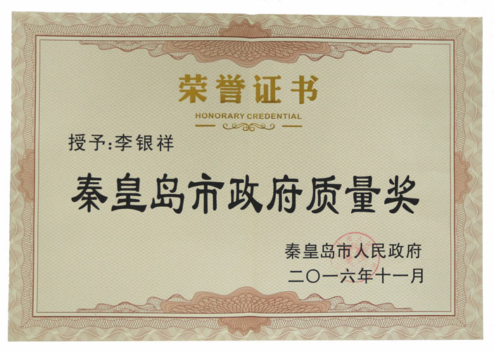 “秦皇島市政府質(zhì)量獎”是秦皇島市政府設(shè)立的最高質(zhì)量榮譽(yù)獎項(xiàng),其中個人獎授予為推進(jìn)區(qū)域、行業(yè)、企業(yè)提高質(zhì)量作出突出貢獻(xiàn)的先進(jìn)個人。