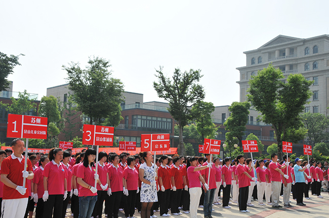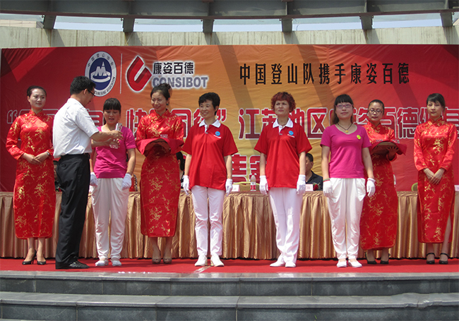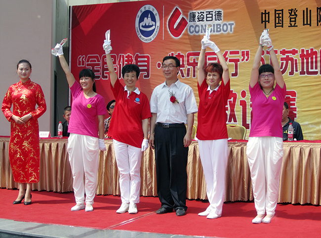 5月25日上午11時,中國登山隊攜手康姿百德舉辦的“全民健身·快樂同行”康姿百德第二套健身操邀請賽江蘇地區比賽在江蘇太倉舉行。來自江蘇各地區的18個代表隊共計600余名健身愛好者參加了此次比賽。 參加此次比賽的主要嘉賓有:中國登山協會副會長楊文祥、原張家港工商局局長焦兀、太倉市城廂鎮工商分局書記楊振華、太倉市保護消費者協會秘書長鄒雁、太倉曲藝指導委員會秘書長徐兆群、康姿百德公司董事長、總經理李銀祥等。 中國登山隊攜手康姿百德“全民健身·快樂同行”大型公益活動,于2012年在全國開展以來,受到了社會各方面的廣泛關注。為了將“全民健身·快樂同行”大型公益活動進一步引向深入,讓更多的人走出家門,參加全民健身運動,中國登山隊,秦皇島康姿百德高新技術開發有限公司,決定聯合舉辦“全民健身·快樂同行”康姿百德健身操邀請賽,江蘇地區是本次邀請賽初賽的第一站。 在比賽中,身著紅色演出服的青年歌手楊德朗站在車上出場,演唱了他的原創歌曲《最美中國人》。這首歌曲是康姿百德第二套健身操的背景音樂之一,全體參賽的健身愛好者隨著音樂而舞動,統一的著裝、整齊的動作、飽滿的熱情,將本次比賽推向了高潮。 經評比,18個代表隊分獲“最佳表演獎”、“團隊建設獎”、“最佳組織獎”等獎項,這些健身操愛好者將在9月份來到秦皇島參加“全民健身·快樂同行”康姿百德健身操邀請賽的展演,勢將引起新一輪的康姿百德健身熱潮。