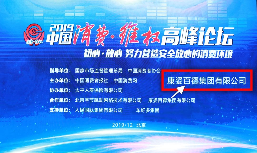 2019年12月13日,由國家市場監(jiān)督管理總局、中國消費(fèi)者協(xié)會(huì)指導(dǎo),中國消費(fèi)者報(bào)社和中國消費(fèi)網(wǎng)聯(lián)合主辦,康姿百德集團(tuán)作為合作單位,主題為“初心·放心——努力營造安全放心消費(fèi)環(huán)境”的“2019中國消費(fèi)·維權(quán)高峰論壇”在北京隆重召開。