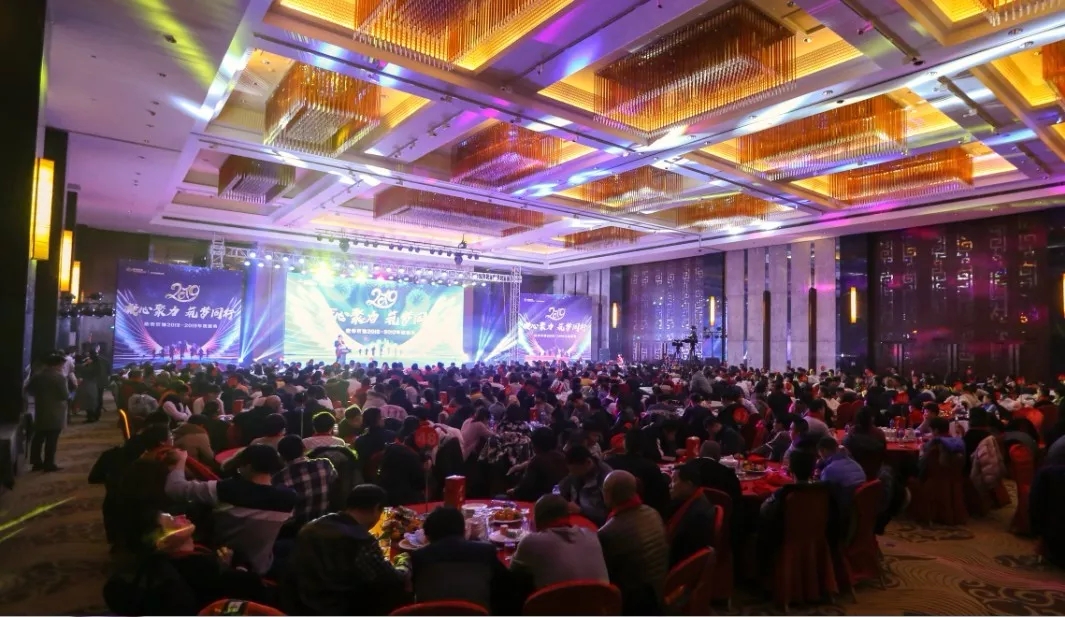 康姿百德集團(tuán)董事長(zhǎng)李銀祥等領(lǐng)導(dǎo)與銷(xiāo)售公司及職能部門(mén)全體員工歡聚一堂,共度盛典。