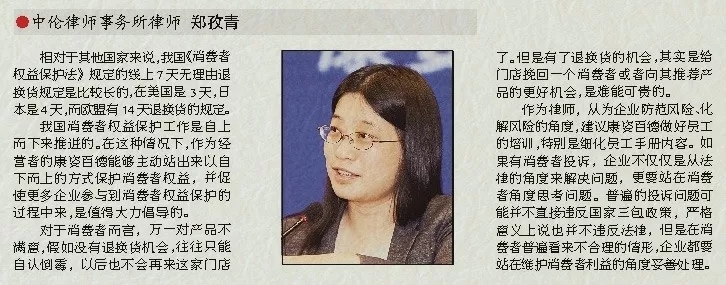 我國消費(fèi)者權(quán)益保護(hù)工作是自上而下來推進(jìn)的。在這種情況下,作為經(jīng)營者的康姿百德能夠主動(dòng)站出來以自下而上的方式保護(hù)消費(fèi)者權(quán)益,并促使更多企業(yè)參與到消費(fèi)者權(quán)益保護(hù)的過程中來,是值得大力倡導(dǎo)的。