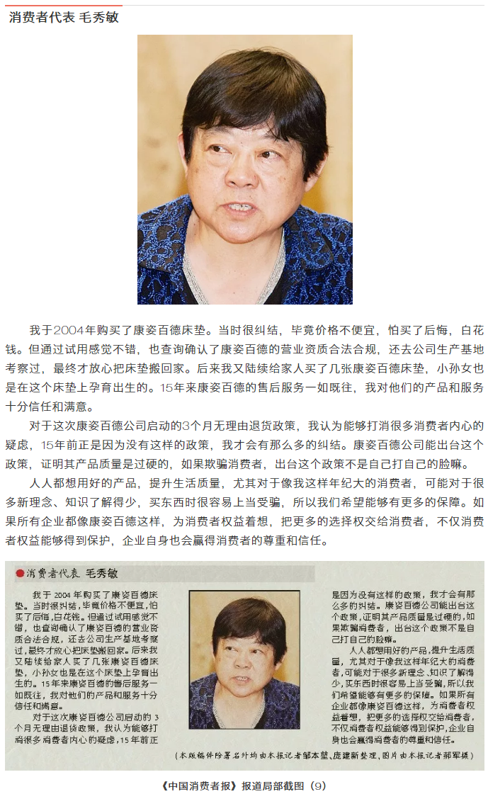 寢具市場事關(guān)人民生活健康,也事關(guān)人民的美好向往。期待通過本次座談會(huì),能夠提高消費(fèi)者對健康睡眠的意識(shí),傳遞更科學(xué)更豐富的健康理念,推動(dòng)寢具市場良性競爭和健康發(fā)展。本次論壇得到了康姿百德公司大力支持,他們推出的90天無理由退貨服務(wù),體現(xiàn)了公司服務(wù)意識(shí)和對消費(fèi)者高度負(fù)責(zé)的態(tài)度,在退貨的流程上最大程度地方便消費(fèi)者。我們看到了一家企業(yè)在做好產(chǎn)品、在科技創(chuàng)新造福人民健康的基礎(chǔ)上,注重消費(fèi)者對產(chǎn)品的體驗(yàn)和反饋,不斷優(yōu)化服務(wù)體系和產(chǎn)品方案,嚴(yán)格自律,規(guī)范營銷,力求為消費(fèi)者提供更加滿意的服務(wù)和更加優(yōu)質(zhì)的產(chǎn)品,身體力行地為寢具市場健康發(fā)展而努力。