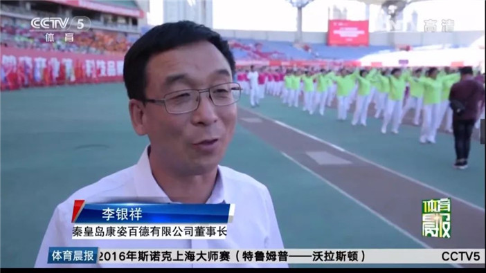 2016年,CCTV-5體育頻道報道康姿百德第五屆“全民健身 快樂同行”健身公益活動。