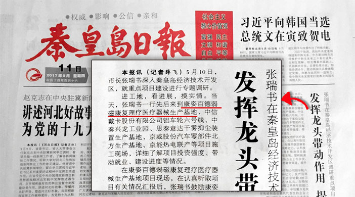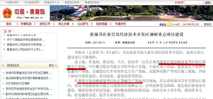 2017年5月10日,秦皇島市長張瑞書深入康姿百德第二科技園,就項目建設情況進行調研,康姿百德集團董事長李銀祥等集團領導陪同調研。