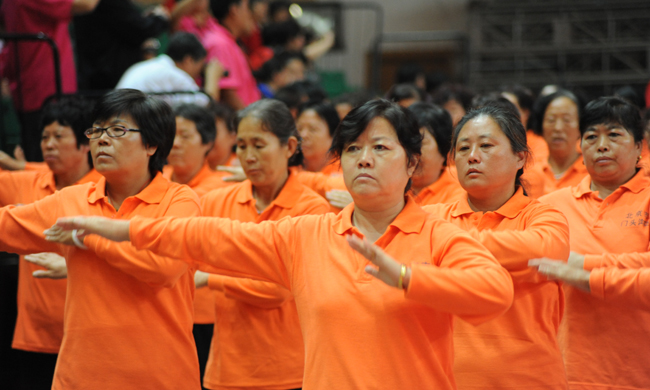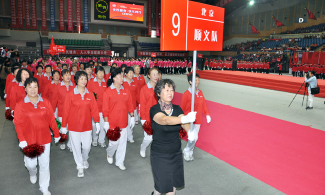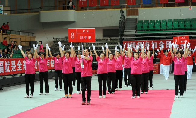 北京昌平隊 從選拔、備戰(zhàn)到今天的總決賽,一路走來,參賽隊員們的動作越來越熟練,越來越標(biāo)準(zhǔn),團隊凝聚力越來越強。這些活力十足的中老年朋友并沒有滿足于越跳越熟練這一標(biāo)準(zhǔn),不少參賽隊伍在原有健身操基礎(chǔ)上又添加了一些新的成分。充滿個性的隊名、色彩鮮艷的運動裝、揮舞的彩旗等創(chuàng)意,在總決賽的舞臺上給所有觀眾打造了一臺視覺盛宴,讓參賽節(jié)目更有看頭。賽場上,參賽隊員的展示非常到位,微笑始終掛在臉上,就連賽前的口號都是精心準(zhǔn)備、反復(fù)推敲。活力無限的她們感染了舞臺下的每一位觀眾,現(xiàn)場觀眾都在用自己最熱烈掌聲、最大的歡呼聲表達(dá)著對參賽選手的喜愛和尊重。 |