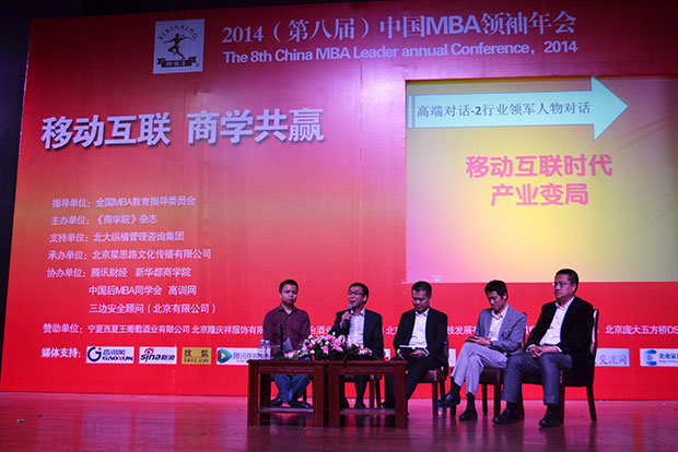 2014年5月2日至4日,我公司董事長李銀祥應邀出席了在北京召開的第八屆中國MBA領袖年會。會上,李銀祥作為特邀嘉賓,參與行業(yè)領軍人物高端對話,并圍繞“移動互聯時代產業(yè)變局”這一主題,對當前國際國內移動互聯網產業(yè)的發(fā)展局勢進行了深入分析,闡述了自己的觀點。 中國MBA領袖年會是中國MBA界最具影響力的高端品牌盛會之一,自2007年9月9日在北京舉辦至今,已經連續(xù)成功舉辦了八屆。每年都以不同的主題,召集來自全國237所MBA院校的MBA、EMBA以及商學院領導參與,共同探討中國MBA教育的發(fā)展和不同時期的企業(yè)家責任等學商課題。