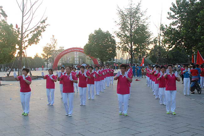 為深入推廣“全民健身”活動,8月12日,江蘇邳州體育局組織廣大健身愛好者舉行了廣場舞表演,近200人組成的康姿百德健身操代表隊深受廣大市民好評。