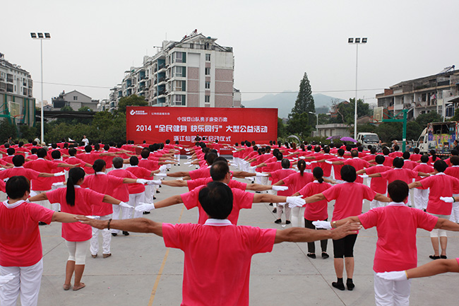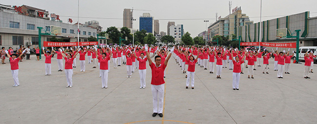 8月8日一大早,為迎接第六個(gè)“全民健身日”的到來,浙江仙居廣大市民相約來到城區(qū)西門,伴隨著優(yōu)美的樂曲,共同舞起康姿百德健身操,向人們展示激情與活力。動聽的音樂、優(yōu)美的舞姿,引得行人不時(shí)駐足觀看,開心幸福的笑容蕩漾在每個(gè)人的臉上,全民健身的理念也深深扎根于每個(gè)人的心中。 本次活動得到了當(dāng)?shù)赜嘘P(guān)部門和新聞媒體的關(guān)注,仙居電視臺進(jìn)行了現(xiàn)場采訪,并于當(dāng)晚在仙居綜合頻道播出。