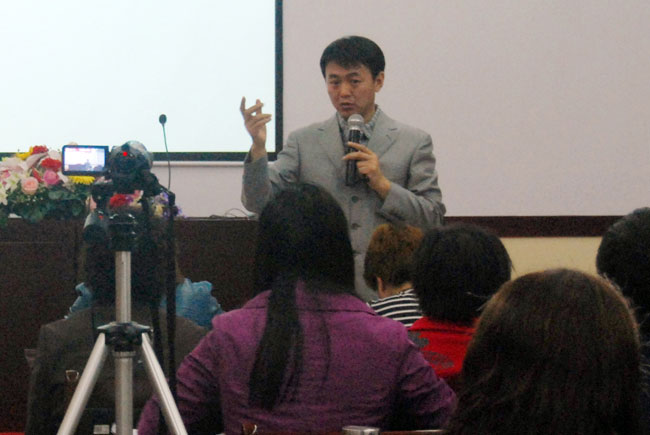 康姿百德副總經(jīng)理包洪吉在研修會(huì)上做產(chǎn)品知識(shí)講解