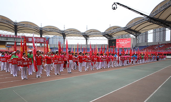 為全面展示康姿百德2014“全民健身快樂同行”大型公益活動的成果,進一步把全民健身活動引向深入,來自全國各地的257個代表隊、11000多人進行了氣勢恢宏的康姿百德健身操展演。伴隨著耳熟能詳?shù)男?,各代表隊依次入場,一面面隊旗迎風(fēng)高揚,一排排隊伍整齊劃一,節(jié)奏明快的旋律和優(yōu)美舒暢的動作有機融合,彰顯出了“我運動、我健康、我快樂”的健身風(fēng)采和大家對幸福生活的追求,把人們帶入了一個五彩繽紛的歌舞世界。晚上7點30分,經(jīng)過6個多小時的展演,活動在燈火閃爍的夜色中緩緩落幕。
