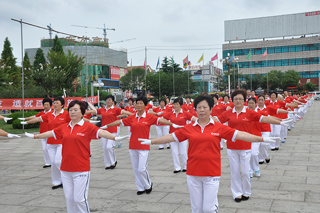 康姿百德健身操作為一種體育鍛煉項目,以其動作舒緩、節(jié)奏明快、簡單易學、適宜人群廣泛的特點,已被山東文登的廣大市民所青睞。 8月8日,文登經銷商組織當地800多名健身愛好者,舉行了康姿百德2014“全民健身快樂同行”活動啟動儀式,大家以表演康姿百德健身操的方式,呼吁更多的人們提高健身意識,開展全民健身,樹立健康文明的現代新風。文登電視臺《百姓關注》欄目對本次活動進行了現場采訪和專題報道。