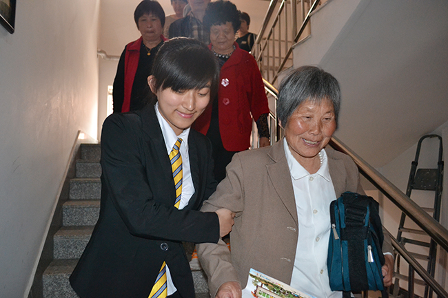 攙扶顧客下樓梯