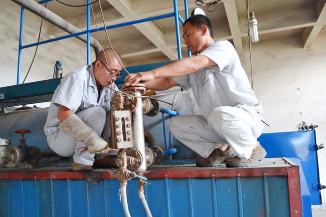 馮國成在給工友講解維修注意事項(xiàng) 在本職崗位上,他緊密聯(lián)系工作實(shí)際,堅(jiān)持刻苦鉆研業(yè)務(wù),攻克了生產(chǎn)中存在的許多技術(shù)難題。充分發(fā)揮了勞模的骨干和帶頭作用,支持和幫助其他工友提升業(yè)務(wù)素質(zhì)。瞧,他身邊這位全神貫注的年輕人,沒準(zhǔn)兒就是下屆的勞動模范呢!
