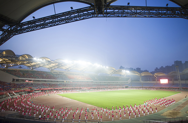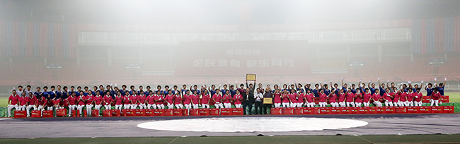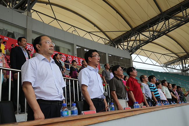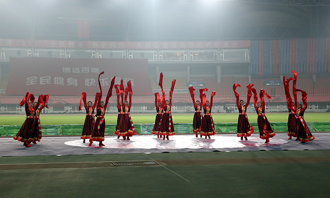 督導(dǎo)師進(jìn)行紅旗表演 康姿百德健身操表演,是這次活動中檢閱和展示全民健身成果的重要內(nèi)容,也是最為引人注目的重頭戲。20多個省、市、自治區(qū)的8000多名康姿百德健身操愛好者,組成188個代表隊先后入場,表演隊伍浩浩蕩蕩、首尾相連,偌大的體育場瞬時變成一個舞的海洋。參賽隊員中年齡最大的72歲,最小的只有9歲,大家雖然經(jīng)歷了長途跋涉的旅途勞頓,但個個精神飽滿、熱情高漲,橫平豎直、整齊優(yōu)美的表演,帶給全場觀眾以美的享受,向人們傳遞著積極向上、健康文明的生活方式,贏得了全場觀眾的陣陣掌聲。經(jīng)過6個多小時的精彩表演,在評委們公正認(rèn)真的打分評判下,比賽共產(chǎn)生一等獎2個,二等獎6個,三等獎9個。