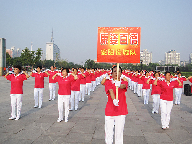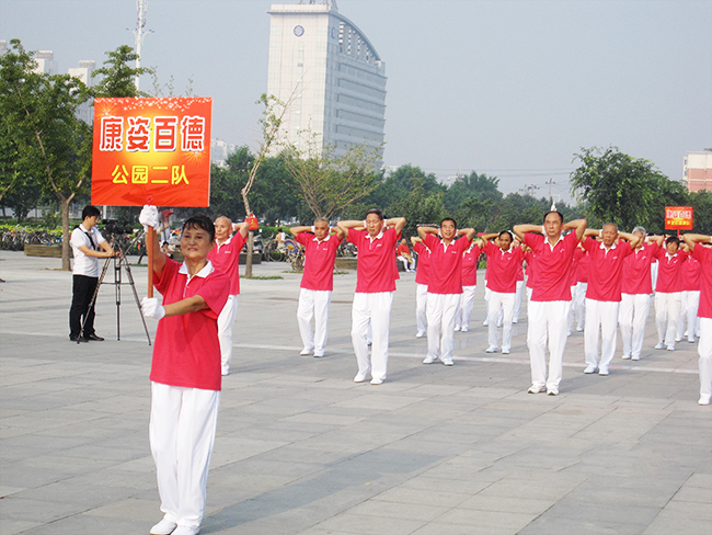 積極備戰(zhàn)9月份在秦皇島市舉行的2013“全民健身·快樂同行”大型公益活動總結(jié)表彰大會,進一步提高廣大群眾的全民健身意識、推廣普及全民健身活動,康姿百德健身操展演比賽活動近日相繼在安陽市舉行,深受人們的喜愛。 8月15日上午,康姿百德第二套健身操大賽在安陽市東區(qū)圖書館、博物館兩個廣場舉行,來自各個健身站點的520名康姿百德健身操隊員,在烈日的炙烤下,雖然個個汗流浹背,但卻精神抖擻、興奮不已。伴隨著一曲曲節(jié)奏明快、耳熟能詳?shù)囊魳罚?3支代表隊輪流上場、各展風采,隊員們時而伸臂擴胸,時而扭腿墊步,動作嫻熟整齊,隊形變幻奇妙,比賽現(xiàn)場猶如一幅幅美麗的畫卷,讓人應接不暇,大飽眼?!?br style="margin:0px;padding:0px;" /> 此前,在8月8日舉行的安陽市“全民健身日”啟動儀式上,由450人組成的康姿百德健身操隊伍,以其龐大的陣容和精彩的演出,為人們傳遞了健康、快樂和幸福,得到了廣大群眾的一致好評。 據(jù)悉,8月24日,康姿百德產(chǎn)品說明會又將在安陽市兩館廣場舉行,屆時將再次舉行康姿百德健身操展演,并為在康姿百德第二套健身操大賽中獲獎的代表隊頒獎。