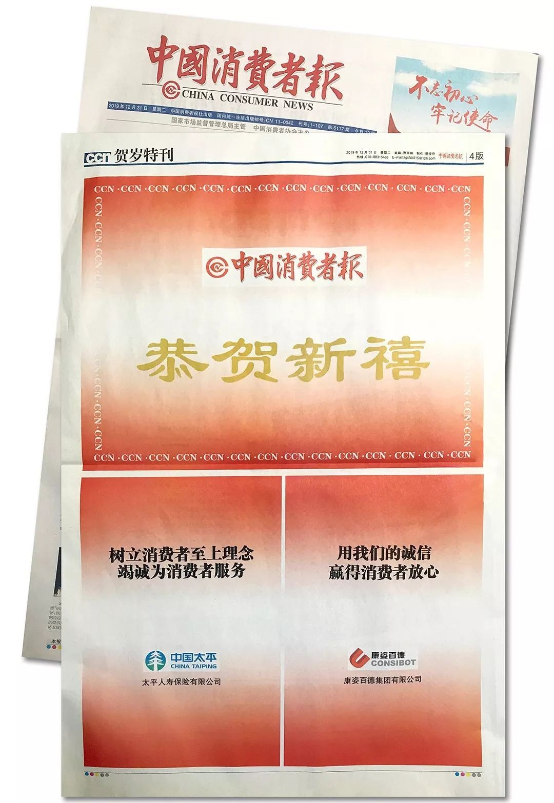 2019年12月31日,康姿百德再次榮登《中國(guó)消費(fèi)者報(bào)》,這也是2019年第四次榮登此報(bào)。本次《中國(guó)消費(fèi)者報(bào)》邀請(qǐng)了在消費(fèi)維權(quán)領(lǐng)域成績(jī)優(yōu)秀的幾家知名企業(yè),康姿百德作為受邀企業(yè)之一在賀歲版面進(jìn)行刊登,在新年來(lái)臨之際,為廣大消費(fèi)者送上新春祝福。