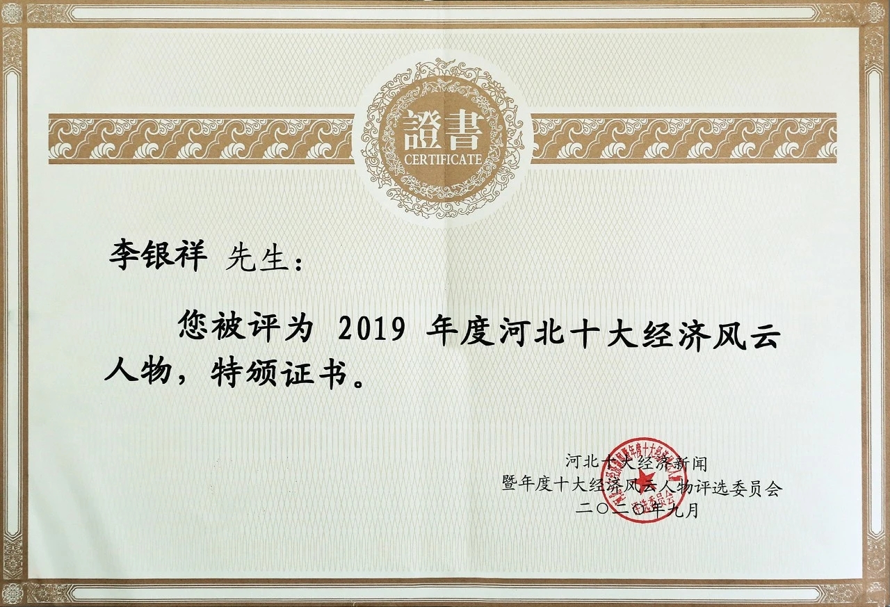 “河北十大經(jīng)濟(jì)風(fēng)云人物”榮譽(yù)證書(shū)