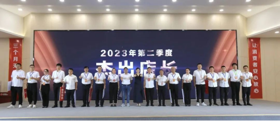 培訓(xùn)會結(jié)束后,自營公司還舉辦了2023年第二季度頒獎典禮。頒獎典禮上,李銀祥董事長對自營公司取得的優(yōu)異成績、對自營經(jīng)理和店長們的辛勤付出給予了充分的肯定與認(rèn)可,并親自為獲獎的自營店長和經(jīng)理頒獎,同時也鼓勵其他經(jīng)理和店長以先進(jìn)為榜樣,銳意進(jìn)取、奮勇向前,為公司做出更加卓越的貢獻(xiàn)!