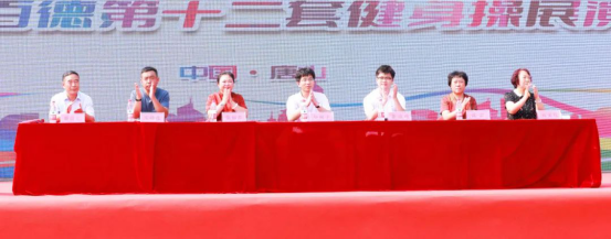 健身操愛(ài)好者各個(gè)精神飽滿、神采奕奕,踏著輕松歡快的節(jié)拍,依次上場(chǎng)展演。各代表隊(duì)著裝整齊、動(dòng)作優(yōu)美協(xié)調(diào)、配合默契,精湛的健身操表演,獲得了現(xiàn)場(chǎng)領(lǐng)導(dǎo)與圍觀群眾的一致好評(píng)。
