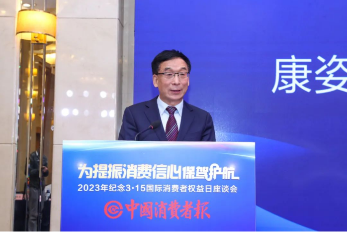 3月14日,2023年度“紀(jì)念3·15”國際消費(fèi)者權(quán)益日座談會在京召開。來自國家市場監(jiān)督管理總局相關(guān)司局負(fù)責(zé)人、中國消費(fèi)者協(xié)會領(lǐng)導(dǎo),以及在保護(hù)消費(fèi)者權(quán)益方面貢獻(xiàn)突出的典范企業(yè)等,共同參加本次座談會??底税俚录瘓F(tuán)董事長李銀祥作為保障消費(fèi)者權(quán)益的優(yōu)秀企業(yè)代表,受邀出席并作主旨演講。