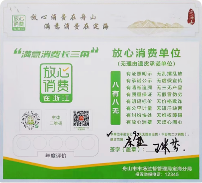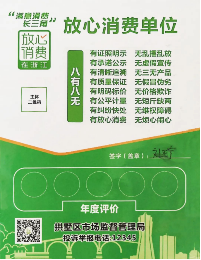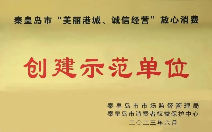 榮獲“放心消費(fèi)單位”榮譽(yù)稱號