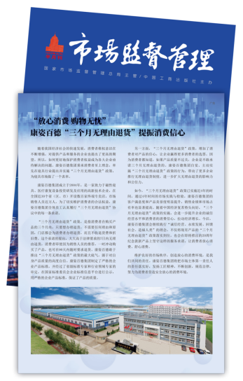 康姿百德在消費(fèi)者維權(quán)方面,積極響應(yīng)國家市場監(jiān)督管理總局的號召,自主在行業(yè)內(nèi)推行“三個(gè)月無理由退貨”政策,并被先后刊登在《市場監(jiān)督管理》雜志上3次。