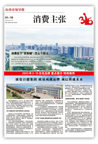 2023年是把握市場機(jī)遇的關(guān)鍵之年,面對全新的機(jī)遇和挑戰(zhàn),康姿百德充分展示出了在大健康領(lǐng)域的專業(yè)服務(wù)能力和領(lǐng)先優(yōu)勢,取得了令人矚目的輝煌成績。同時(shí)公司也受到了中國消費(fèi)者報(bào)、市場監(jiān)督管理雜志、河北經(jīng)濟(jì)日報(bào)、河北日報(bào)、山西市場導(dǎo)報(bào)、遼寧電視臺、宜昌電視臺等多家權(quán)威媒體和主流視頻平臺的全方位、多視角報(bào)道,實(shí)現(xiàn)了全網(wǎng)絡(luò)覆蓋,全平臺傳播。