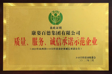 康姿百德榮獲“誠信典范企業(yè)”榮譽(yù)稱號
