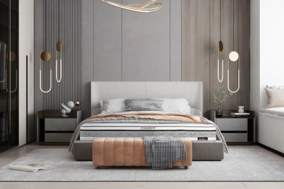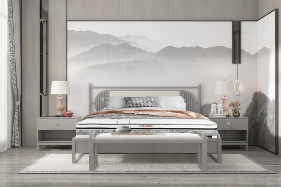 回形紋是中國傳統(tǒng)的吉祥圖案,象征著永恒和連綿不斷的生命力。康姿百德清雅款床墊圍邊用“回形紋”加以點(diǎn)綴,賦予了吉祥如意、福運(yùn)綿綿的美好寓意,展現(xiàn)了中式美學(xué)與現(xiàn)代寢具的交融之美。同時(shí)也增強(qiáng)了床墊整體的精致感。
