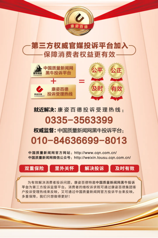 為了進一步提升專賣店的服務水平,更好地維護消費者的合法權(quán)益,康姿百德開通企業(yè)投訴受理熱線,加入了中國消費者協(xié)會“智慧315”消費維權(quán)投訴平臺,還特邀“中國質(zhì)量新聞網(wǎng)黑牛投訴平臺”作為第三方投訴監(jiān)督平臺。并且,統(tǒng)一制作監(jiān)督舉報公示牌張貼在全國所有門店,主動接受消費者的監(jiān)督。多重途徑保障消費者的合法權(quán)益,真正做到投訴有渠道,事事有回音,件件有著落,讓廣大消費者購買無憂。