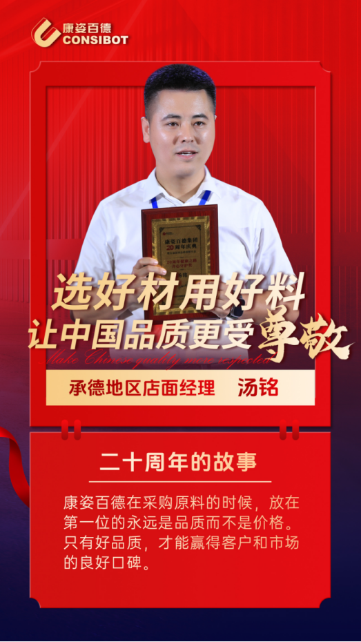 今年是康姿百德集團成立20周年。在20年的發(fā)展歷程中,涌現(xiàn)出一大批在生產(chǎn)發(fā)展、原料采購、質(zhì)量管控、經(jīng)營管理、售后服務等各個領域立足崗位、奉獻建功的優(yōu)秀代表。讓我們一起看看這些榜樣故事。本期帶你走進康姿百德承德地區(qū)店面經(jīng)理湯銘。