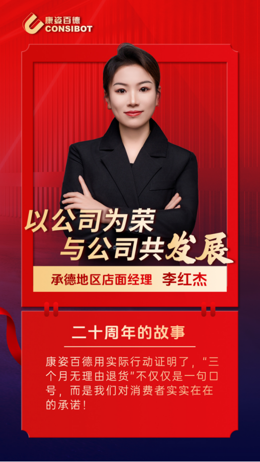 康姿百德的規(guī)模之所以發(fā)展的越來越大,離不開一群像李紅杰這樣的優(yōu)秀經理。李紅杰經理表示,能在康姿百德這樣充分保障消費者權益的公司工作,是她的榮幸,讓她倍感驕傲和自豪。今后她會繼續(xù)把客戶的需求和滿意度放在首位,用真誠和耐心的服務更多消費者,把康姿百德產品推廣到更多的家庭,為大家的品質生活助力!