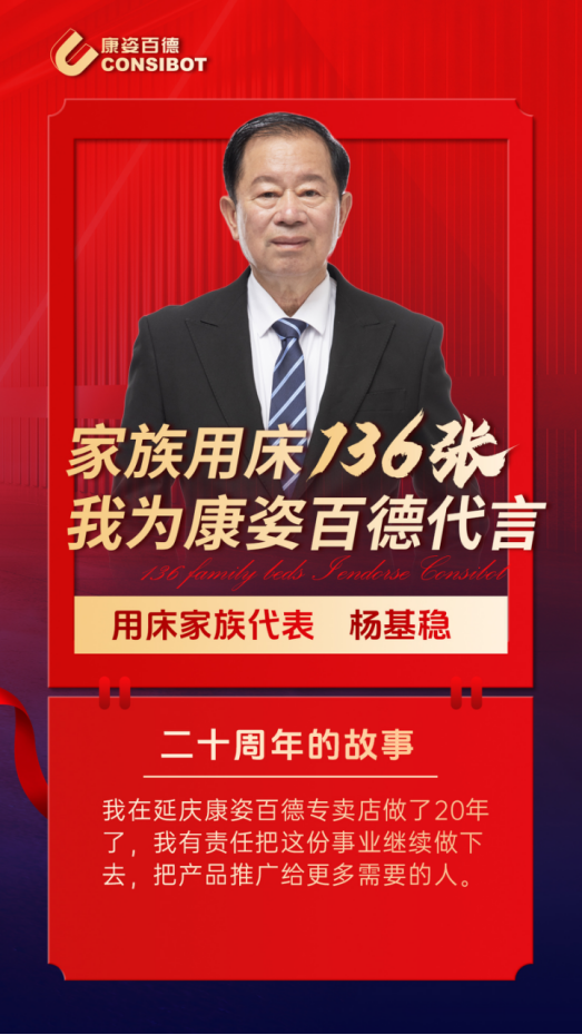 楊基穩(wěn)經(jīng)理提到,加入康姿百德的20年時(shí)間里,在北京延慶這個(gè)30多萬(wàn)人的地區(qū),沒(méi)有換過(guò)地方,也沒(méi)有換過(guò)產(chǎn)品,客戶越來(lái)越多,支持的聲音越大,越干越踏實(shí)!