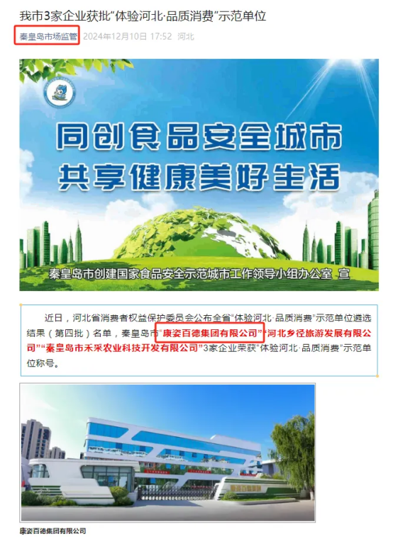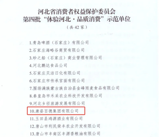 秦皇島市場(chǎng)監(jiān)管部門(mén)于12月10日在公眾平臺(tái)公布了本市第四批“體驗(yàn)河北·品質(zhì)消費(fèi)”示范單位入選名單,康姿百德集團(tuán)榜上有名。
