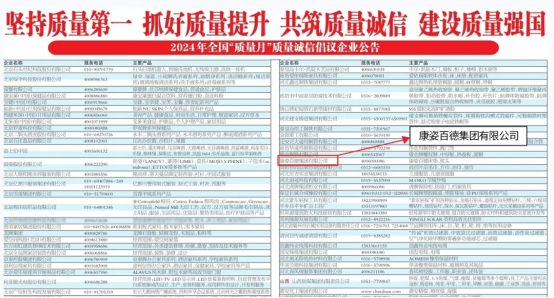 康姿百德被中國質(zhì)量檢驗(yàn)協(xié)會評選為“2024年全國‘質(zhì)量月’質(zhì)量誠信倡議企業(yè)”