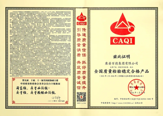 康姿百德集團(tuán)榮獲“全國消費(fèi)者質(zhì)量信譽(yù)保障產(chǎn)品”、“全國質(zhì)量檢驗(yàn)穩(wěn)定合格產(chǎn)品”榮譽(yù)稱號