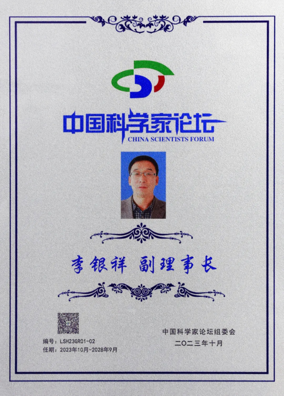 李銀祥董事長當(dāng)選為“中國科學(xué)家論壇理事會副理事長”