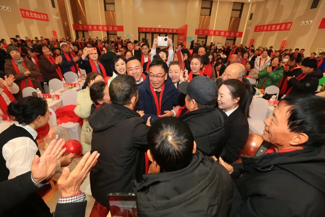 活動現場,銷售公司的領導們早已等候在紅毯兩側,笑容滿面地為每一位步入會場的“家人”親自系上象征吉祥與溫暖的紅圍巾。康姿百德集團李銀祥董事長的到來,更讓現場瞬間沸騰,客戶們紛紛揮手致意,掌聲與歡呼聲交織成一片,將慶典的喜悅氛圍點燃。